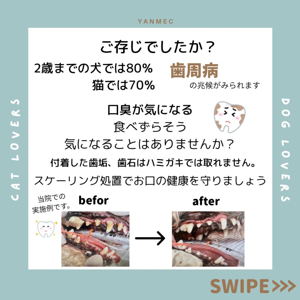 わんちゃん、ねこちゃんのお口の悩みを持たれている飼い主様、これを機にスケーリングをしてみませんか?